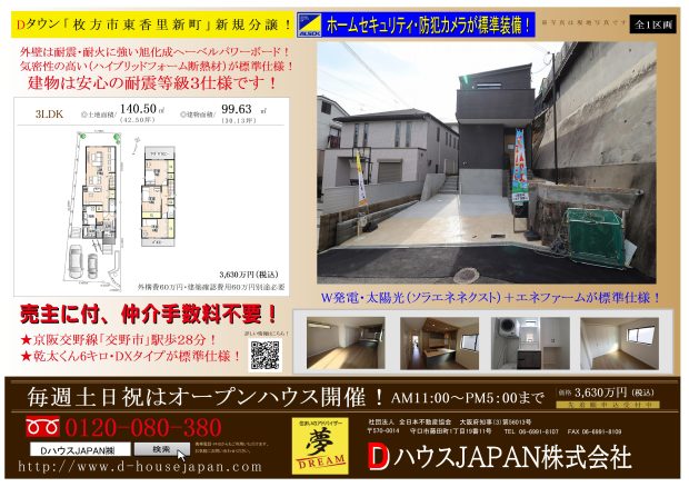 - 枚方市東香里新町、完成しました!