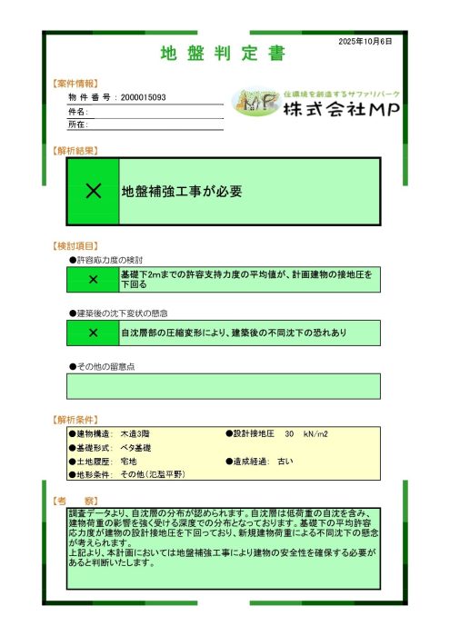 結果地盤改良工事が必要との事で