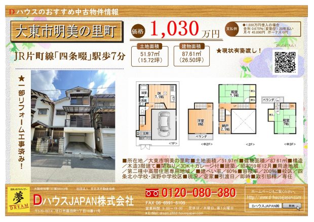 大東市明美の里町、価格変更しました!